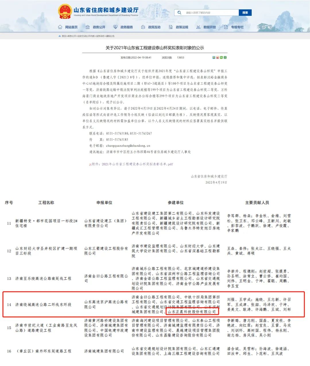 近日,九游官网参建的“济南绕城高速公路二环线东环段项目”荣获2021年度山东省工程建设泰山杯奖!